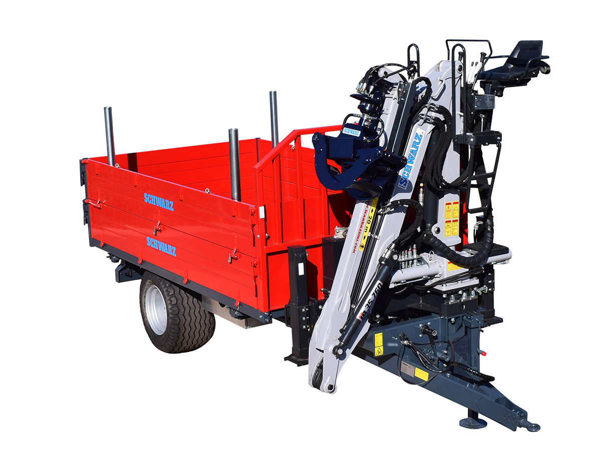 Der Tajfun DOT 40K ist ein robuster und vielseitiger Forst- bzw. Holzkran, der über eine Dreipunktaufnahme an Traktoren montiert werden kann.